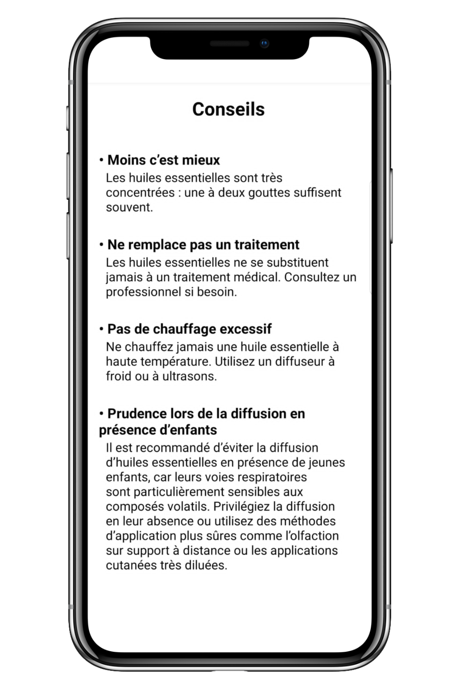 L'application Essentia propose une vingtaine de synergies à retrouver dans la section "Huiles essentielles"